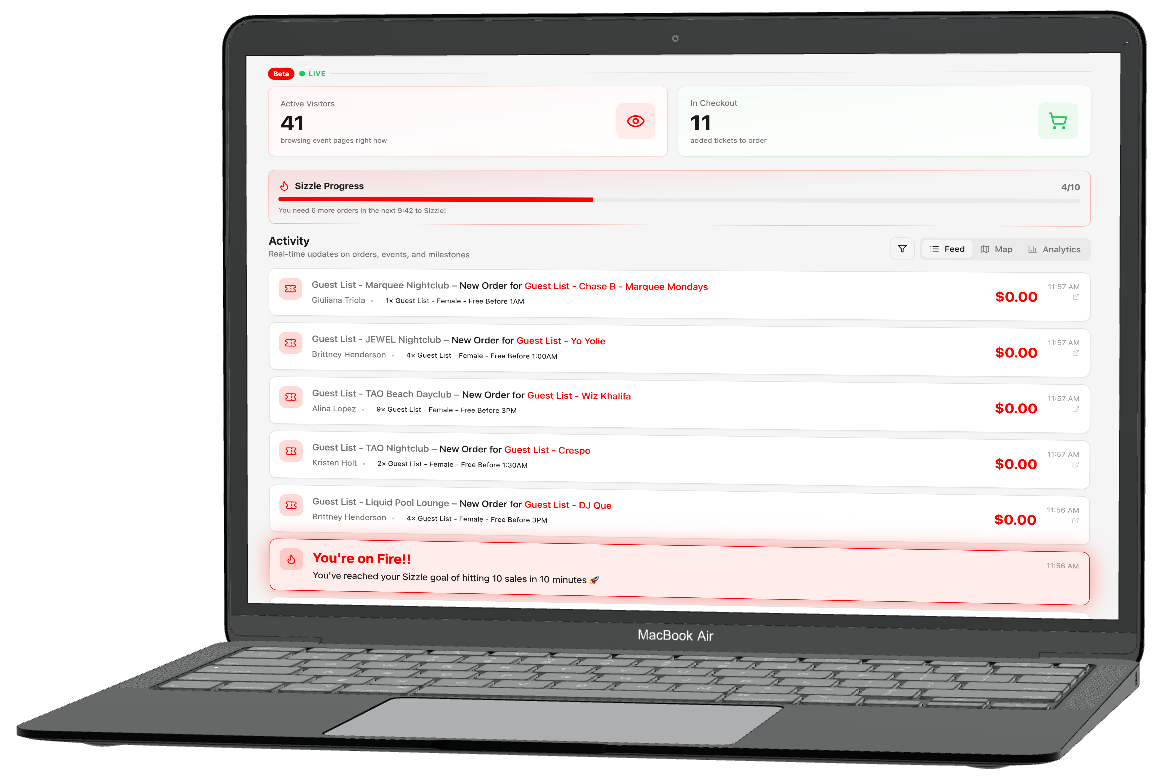 Sizzle is our one-of-a-kind dashboard serving as your real-time sales activity and intelligence hub for all of your events.