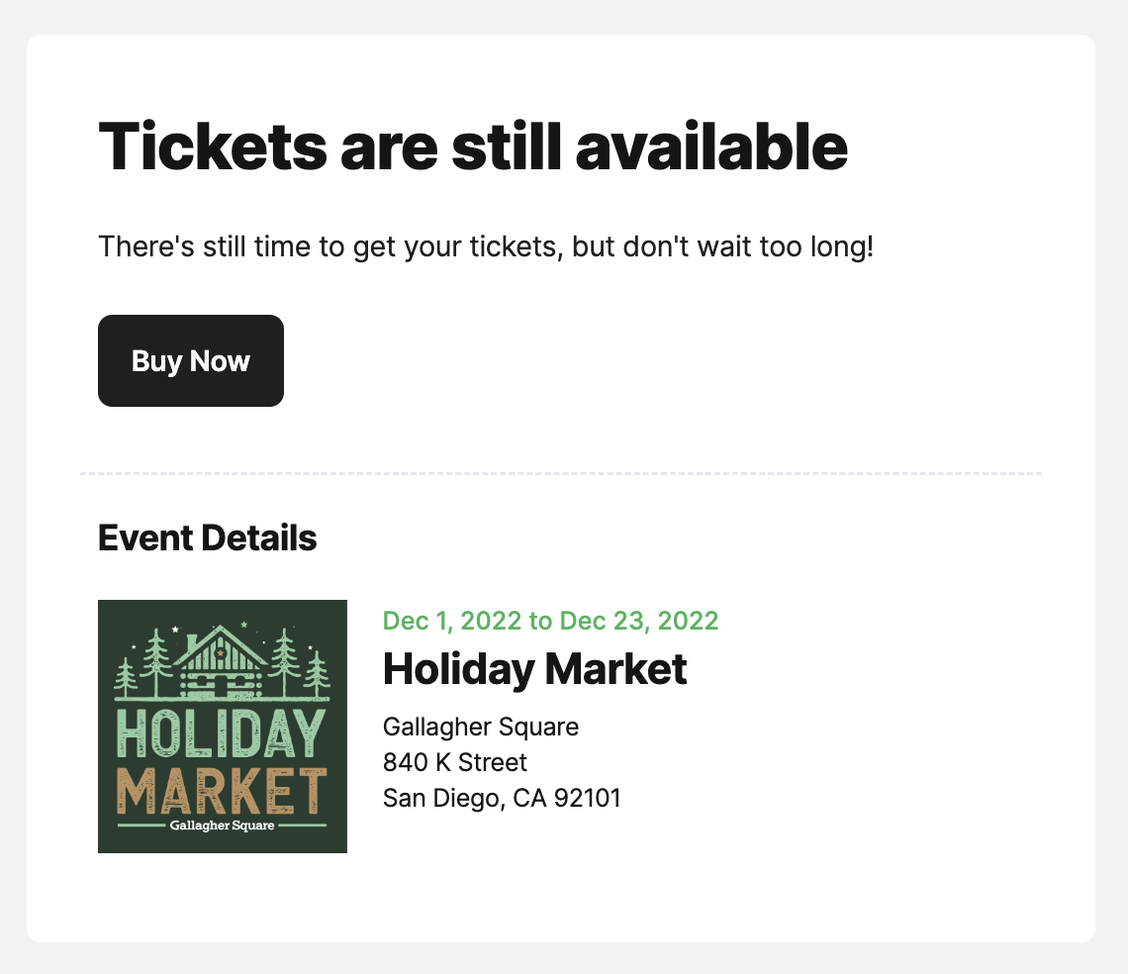 When someone starts checkout but leaves before completing checkout, an automated email reminder is sent to bring abandoners back to complete their order.